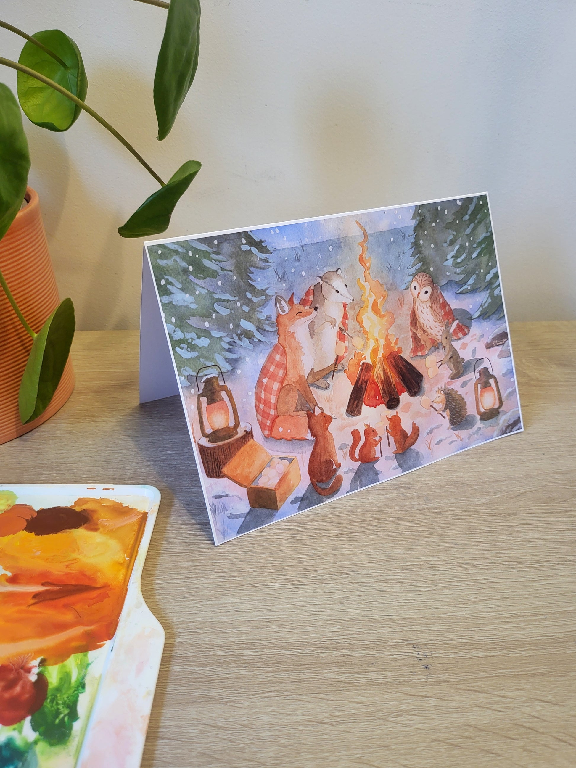 A warm winter moment to send to someone you love — or to keep on your own mantle. Printed on Glossy card giving it a gorgeous shine and making those colours pop. A tiny hearth for your words to rest inside.